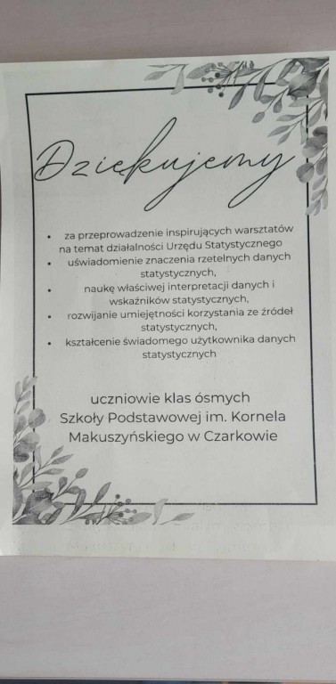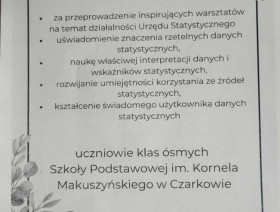 11 marca br. pracownice Urzędu Statystycznego w Katowicach na zaproszenie szkoły, przeprowadziły zajęcia edukacyjne w Szkole Podstawowej im. Kornela Makuszyńskiego w Czarkowie. Zajęcia skierowane były do uczniów klas ósmych.