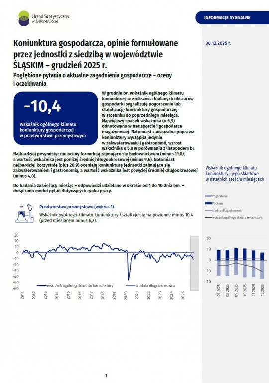 Koniunktura gospodarcza w województwie śląskim - grudzień 2025 r.