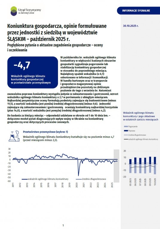 Koniunktura gospodarcza w województwie śląskim - październik 2025 r.