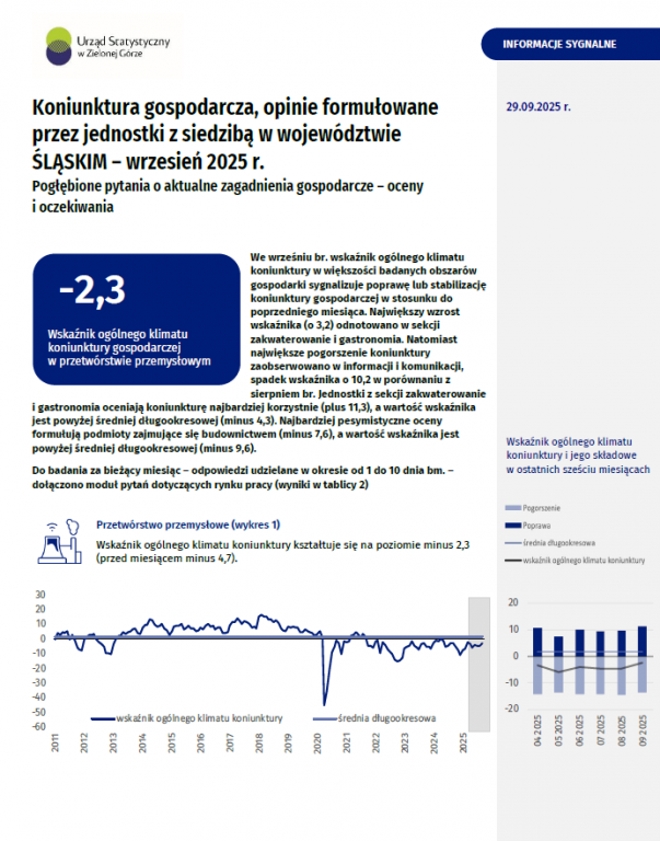 Koniunktura gospodarcza w województwie śląskim - wrzesień 2025 r.